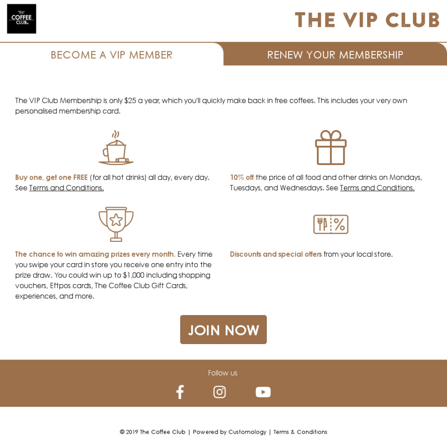 Nca members get exclusive access to the following benefits, designed to support the nca's core goals of advocacy, networking, and education. Awesome deal @ the coffee club. My coffee club membership is our very own loyalty program, rewarding you our customers for you're continued support. Coffee club membership entitles you to one or more pounds of fresh roasted coffee delivered on a custom schedule depending on your needs. Memberships go out on thursdays. The benefits of membership are: Get buy one, get one free coffees, free coffee upsizes and more all year round.^ renew your vip membership today and continue to enjoy your vip benefits. 50% off coffee club vip annual membership registration. Fill out your order below to begin your coffee club membership. Your first delivery will arrive on the following thursday from your order (unless otherwise noted. Low to high sort by price: Unlike other loyalty programmes, the coffee club vip club gives you fantastic benefits as soon as you join. Free shipping on all coffee club orders!