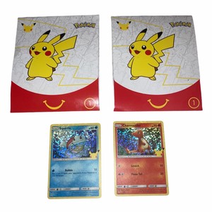 Get the best deals on mcdonald's pokemon promotional fast food toys. Comparing mcdonald's pokemon cards to their originals. The set also includes holographic versions of each card. Official holographic pokemon cards from the three most recent mcdonalds promotional sets. A set featuring every starter and pikachu to commemorate the 25th anniversary of pokemon. There are 50 pokémon 25th anniversary cards in total that can be found from mcdonald's happy meal boxes. Unopened pokemon 2021 mcdonald's 25th anniversary pack usa shipping only it will be ship in a padded envelopes. Some mcdonald's apparently are offering the packs separately, while other locations are including them with the happy meal. Some sealed boxes listed for resale can go for between $600 to $1,000, while individual packs are going up to anywhere from $4 to $20. @mcdonalds @pokemon i sure hope you do some form of inventory control for your promo pokémon cards as some of your stock is being sold in sealed boxes which means they?re not. These cool pokémon tcg cards will only be available in mcdonald's happy meals for a limited time, so don't wait to start your collection. The complete set, which contains 50 cards in total plus holographic versions, was meant to celebrate pokemon's 25th anniversary in collaboration with the fast food giant. You'll receive email and feed alerts when new items arrive.